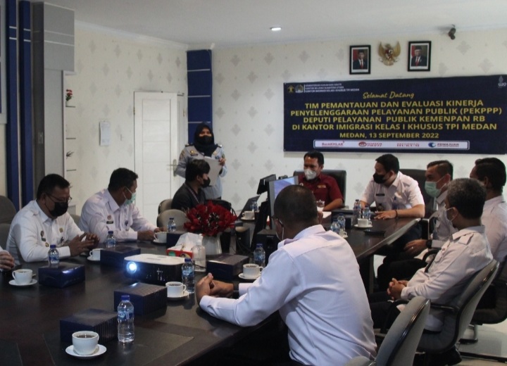 MEDAN, DELITIMES.ID – Kantor Imigrasi Kelas I Khusus TPI Medan menerima tim Pemantauan dan Evaluasi Kinerja Penyelenggaraan Pelayanan Publik (PEKPPP) Deputi Pelayanan Publik Kemenpan RB