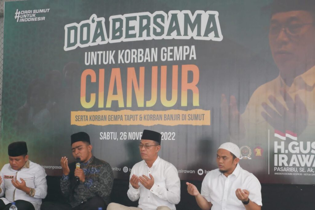 MEDAN, DELITIMES.ID – Gempa bumi di Cianjur beberapa waktu lalu yang menyebabkan ratusan orang meninggal dunia menjadi duka mendalam bagi Indonesia. Anggota Komisi XI DPR RI, H. Gus Irawan Pasaribu yang turut prihatin atas peristiwa tersebut menggelar doa bersama untuk para korban gempa Cianjur.