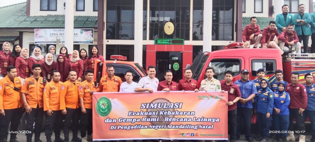 Dalam mengantisipasi dan mewaspadai kejadian gempa bumi dan bencana lainnya yang setiap waktu dapat terjadi, Pengadilan Negeri (PN) Mandailing Natal, menggelar simulasi penangan bencana gempa bumi dan kebakaran, Rabu (04/01/26).