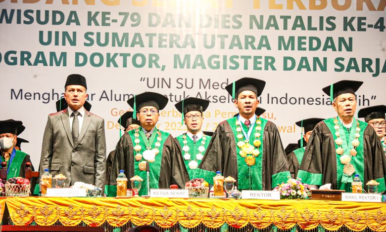 Sementara itu, Plt Rektor UINSU Abu Rokhmad menyampaikan wisuda ke-79 ini menjadi wisuda dengan total wisudawan terbanyak, berjumlah 3.066 mahasiswa program doktor, magister dan sarjana.