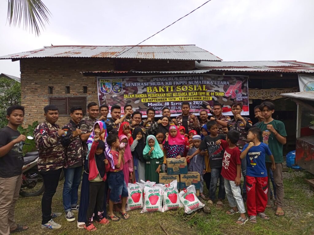 MSDAN, DELITIMES.ID – Pengurus Daerah II Generasi Muda KB FKPPI Sumatera Utara menggelar kegiatan bakti sosial dan syukuran dalam rangka merayakan Hari Ulang Tahun (HUT) FKPPI ke-44 bersama sejumlah adik-adik Binaan Sanggar Belajar Cerdas, di Jalan Veteran Pasar VI Gang Jagung, Labuhan Deli, Kab. Deli Serdang, Minggu (18/9).