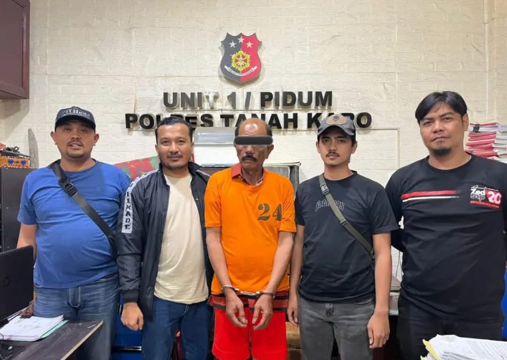 Pelaku berinisial OT (69) ditangkap oleh Satuan Reserse Kriminal Polres Tanah Karo hanya berselang beberapa jam setelah kejadian berdarah tersebut. Penangkapan dilakukan di Jalan Perumahan Rakyat, Kelurahan Gung Negeri, sekitar pukul 15.00 WIB.