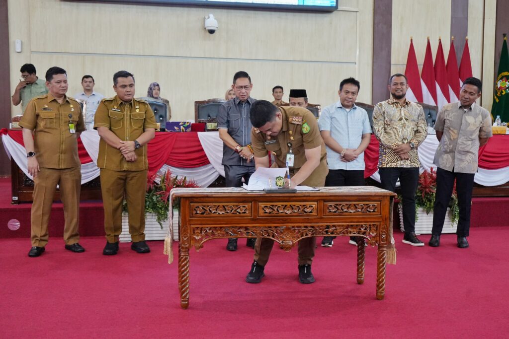 MEDAN – Wali Kota Medan, Bobby Nasution, bersama Pimpinan DPRD Kota Medan menandatangani kesepakatan mengenai Program Pembentukan Peraturan Daerah (Propemperda) Tahun 2025. Penandatanganan ini berlangsung dalam rapat paripurna DPRD Kota Medan yang dipimpin oleh Ketua DPRD Kota Medan, Wong Chun Sen, di Gedung DPRD Kota Medan, Senin (20/1).